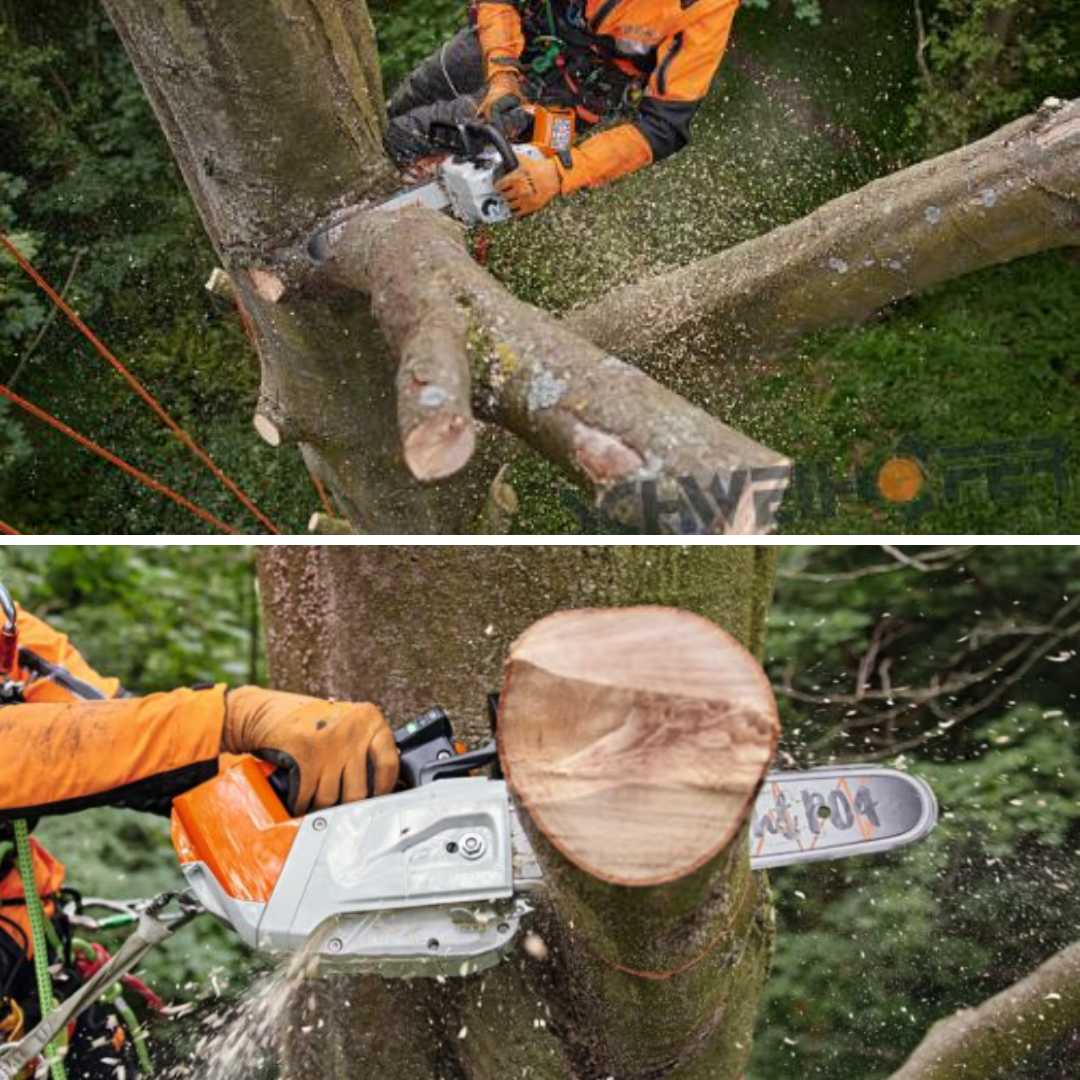 Je opremljena s 40,6 cm rezilom, izdelanim iz titanove zlitine, kar zagotavlja 60 % večjo vzdržljivost in občutno manjšo težo v primerjavi s klasičnimi motornimi žagami.