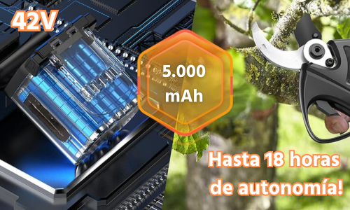 Cizalla/tijera eléctrica de 1.050W con velocidad regulable y dos baterías de 42V-5.000mAh.
