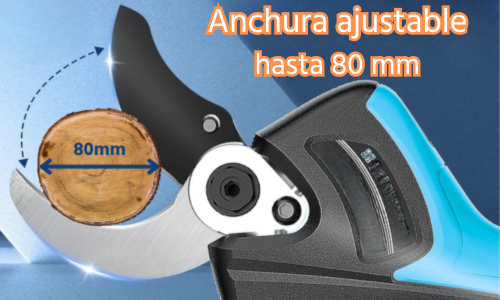 Sin esfuerzo y en menos de un segundo, la tijera eléctrica BOSEK corta ramas de hasta 80 mm (8 cm).