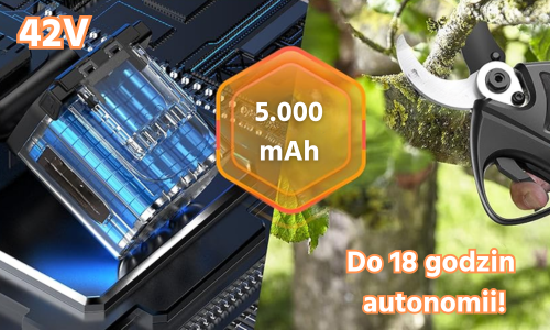 Elektryczne nożyce ogrodowe 1 050 W z regulacją prędkości, 2 akumulatory 42 V-5 000 mAh.