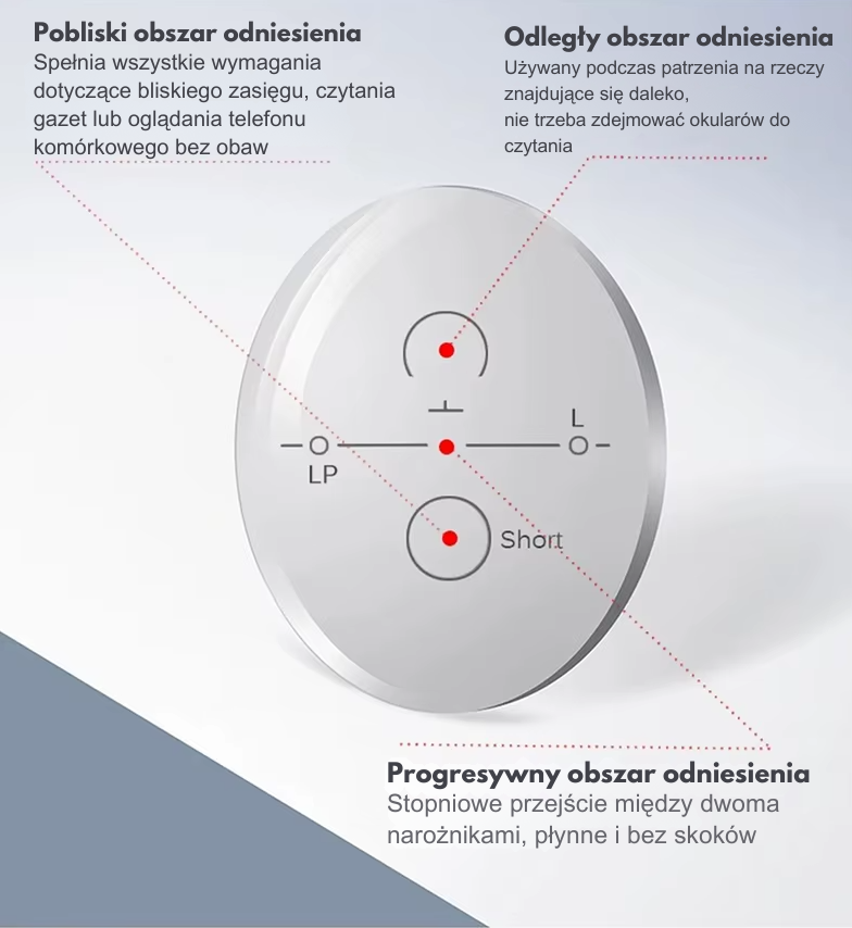 Jedno rozwiązanie dla wszystkich potrzeb korekcji wzroku, umożliwiające noszenie tylko jednej pary okularów, nawet jeśli masz różne recepty dla każdego oka.