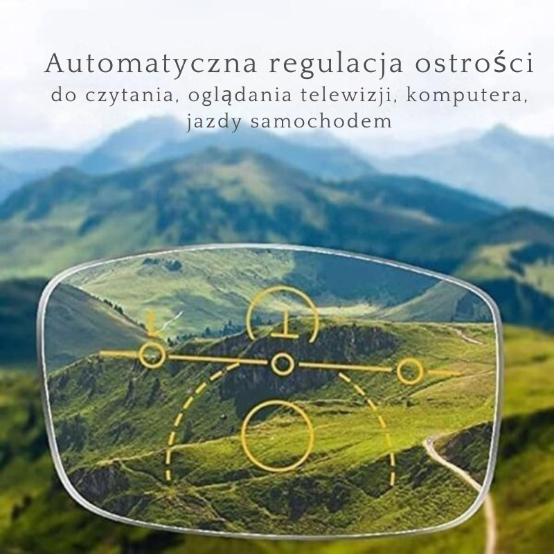 UNIKALNA I REWOLUCYJNA PARA OKULARÓW, KTÓRYCH MOŻNA UŻYWAĆ DO WIDZENIA Z DALEKA LUB BLISKA, CZYTANIA GAZETY Z BLISKA, KORZYSTANIA Z TELEFONU KOMÓRKOWEGO, PISANIA NA KOMPUTERZE LUB CZYTANIA KSIĄŻKI. SAME SIĘ REGULUJĄ! TO JEST REWOLUCJA!”